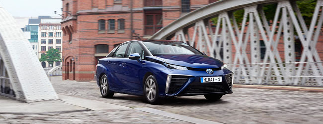 Die einzige Emission des ersten Brennstoffzellen Autos von Toyota ist Wasser. Für seine Pionierrolle wurde der Mirai mit dem ARBÖ Umweltpreis 2015 ausgezeichnet.