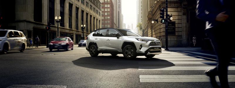Außen athletisch, innen raffiniert. Der neue Toyota RAV4 ist ein markanter SUV, der sich sowohl auf der Straße als auch im unwegsamen Gelände zuhause fühlt. Angefangen von der maskulinen, breiten Front mit den schmal gezeichneten Scheinwerfern über die modelltypische Silhouette bis hin zu den imposanten LED-Leuchten im kraftvollen Heck - mit dem neuen RAV4 hinterlassen Sie auf jedem Terrain einen sportlich-eleganten Eindruck.